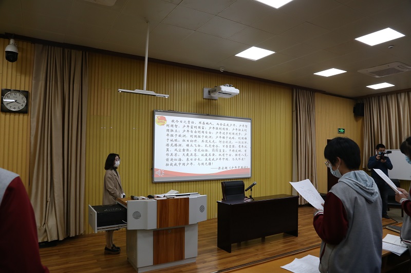 最后全体团员起立,深情齐诵《少年中国说》的经典选段:“故今日之责任,不在他人,而全在我少年。少年智则国智,少年富则国富;少年强则国强,少年独立则国独立;少年自由则国自由,少年进步则国进步……”