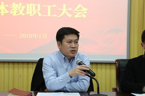 学校的各项工作稳中有进,亮点多多。赵校长对苏大附中 2018 年的工作进行了回顾总结,并对学校未来发展进行了梳理展望。师资队伍建设硕果累累。在教师竞赛中,省市区一等奖获得者实现了所有学科全覆盖, 50% 以上的老师在市级以上竞赛中获奖。同时,学校的“青年教师发展学校”(半塘书院)不断向内涵式纵深发展,以“职业生涯规划”、“青蓝工程”、“理论研修”、“实操实训”为抓手,为青年教师的成长保驾护航。建模利器,固本培元,项目建设卓有成效。本学期学校重点打造五大项目—“半塘书院”(教师发展学校)、“智仁勇”德育课程体系、“ E 学习”中心、校园文化建设、高中生生涯规划等项目有序推进,成果丰硕。教学常规工作扎实稳健,收效良好。两组建设方面注重团队文化的建设,营造了良好的教研氛围环境,让老师们乐于从教、乐于分享、和谐共进、值得肯定。同时,青年教师的备课、教研工作也做得非常认真扎实,为今后的职业发展打下了坚实的基础。在本次期末考中三个年级齐头并进,都顺利达成并且超额完成指标。德育工作细致平稳有序,本学期的“智仁勇”德育体系建构工作持续开展,赵校长肯定了其中“五月戏剧节”、“共读家书”等多项活动,他认为这些活动有效激发了学生的创造力,发掘了潜能,培育了人文精神,这类活动对学校的文化建设、内涵发展大有裨益。提升装备,打造优质育人文化场。 2018 年暑假学校开展的大型的修缮工作,对学校的教育教学环境有了很大提升。同时,学校还组建了“校园文化建设”项目小组,以“智仁勇”校训为主线,秉承“以文立校、以文化人”的思想,以儒家文化为底色,打造富有故事、有寓意又相互联系的校园文化序列。此外,学校以“知行合一”为目标开展践行校训校风教育,通过“读《论语》,行校训”系列活动,使每一位师生成为学校文化的名片。最后,赵校长对老师们的假期生活提出了几点提醒,希望广大教师注意安全、严禁有偿家教等。