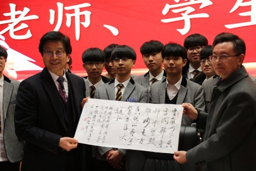 在欢迎仪式上,两校校长分别做了热情洋溢的致辞,表达了珍惜友谊,加强合作交流的共同愿望。赵光义校长表示,热烈欢迎韩国全州新兴高中交流团来到中国苏州,来到苏州大学附属中学。苏州大学附属中学与韩国全州新兴高中具有相同的校训——智仁勇,这足以说明两校在培养学生的理念上有共同之处,我们将与韩国兄弟学校保持长期交往、相互交流的关系。韩国新兴高中校长对此表示高度赞扬,希望在共同校训“智仁勇”的指引下进一步加深交流合作。