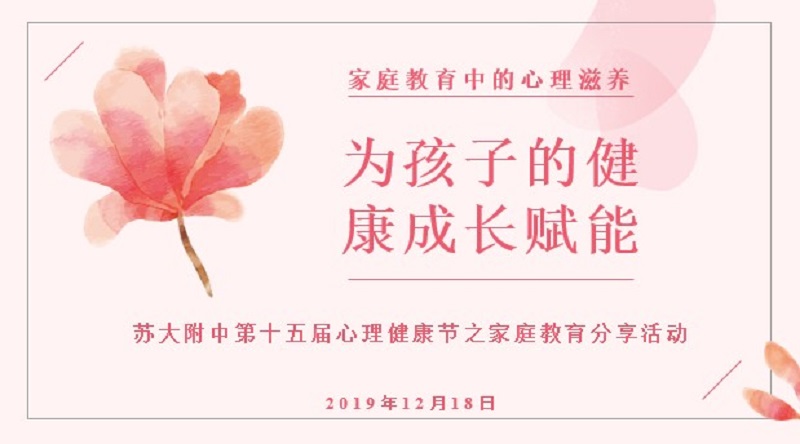 为孩子的健康成长赋能——苏大附中第十五届心理健康节之家庭教育分享活动