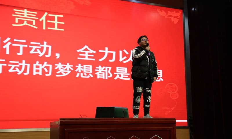之后,李老师激励学生立即行动起来,勇敢向高三全体师生说出自己的梦想。费孝通(2)班的闻许彬同学勇敢地向高三全体师生坚定地喊出了自己的梦想:“我要去南大!” 高三(8)班的刘“先生”跟同学一一握手,宣誓自己要考上东南大学并与班主任握手拥抱,感谢老师的鼓励与帮助。高三(2)班的阮一航上台,站在讲台上,大声说出:“我阮一航,要上武汉大学!” 并在现场与父亲连线,告知自己的理想并感谢父亲的悉心照顾与教导。